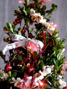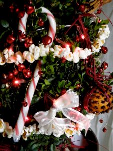 The popcorn strings didn’t last very long. They crumble all over the place. So I don’t think I will be making fresh ones this year. Besides they’re better for eating! The orange clove pomanders and cinnamon sticks are still in good shape, so back on the tree. And I must get more candy canes. They’re about the only thing I remember from childhood Christmas – just the one lasting memory of sucking the tips till they’re sharp like pencil!