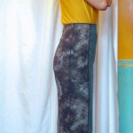 • First time I used flatlock seaming. And boy was it scary. For the vertical seams one side has no seam allowance and the other side only 1/4″. They’re sewn wrong sides together on the overlocker with 2-thread flatlock (so seam allowance sticking out). Then pulled in opposite direction to flatten the seam. Not sure if I did it correctly, but mine end up overlapping that 1/4″ & I had to use blunt sweater needle to coax the underlayer’s 1/4″ SA flat – it was folding in half, so won’t lay flat. Flatlock seam just look so delicate. Fingers crossed the seams won’t pop open during wear. (Maybe I should carry a back up skirt around if I’m wearing this outside the house?) You could theoretically reinforce the seams from the inside by fusing a thin strip of interfacing over the seam as recommended by various serger books. But then it won’t be reversible. And I can’t decide on which color blocking design I prefer.