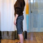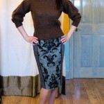 Wow that took determination…. it was definitely worth it though, it’s more than just wearable, it looks really fashion forward (in a good way) now. I still really like that damask flocked pencil skirt by the way. I’ve just taken up knitting again with a vengeance after a huge hiatus, and I’m finding that now I’m just paranoid about ending up with wadders, and fitting, fitting, fretting, fretting as I go. I just frogged something after only knitting about 20% because I could tell it was too big. I think it’s a by product of sewin, being hypercritical about the fit of knitting. 🙁 But I know you said in a previous blog that this one just wouldn’t unravel, so fantastic that you have been able to salvage it so spectacularly.