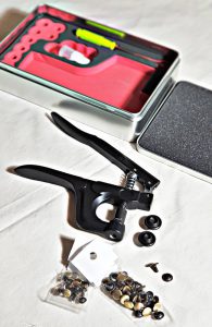 - Rivets to reinforce strap attachments… because another point of failure on my prototype was strap attachment stitching, and one of these bags will be a gift so I wanted it to hold together a bit longer. I used a hand press kit & bag rivets I got in Asia. Went on like a treat. No more waking up the neighbours with hammer banging in the middle fo the night!