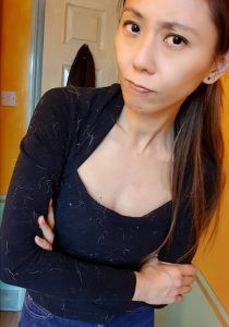 Trawling for ideas in Pinterest, I thought a cowl-neck sweater dress like the one Gigi Hadid wore may go well with the mini-skirt & thigh-high boots. Had such high hope for this frosting. But it was NG – I felt like a pink Big Bird. So I thought maybe I can salvage this by going tighter – like a ballet-style wrap cardi. Unfortunately there really wasn’t enough fabric in the tent sweater. I tried piecing, but it didn’t work with the delicate sweater knit. Worst part is the shedding. You could have sworn I have like 10 cats in the house. Achoo!