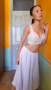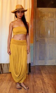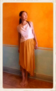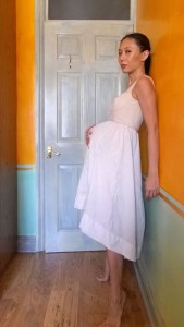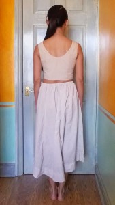 But I clung to the original dress’ empire waistline, and this was a mistake. I looked like a pregger wench in the resulting dress. To avoid any well meaninged but awkward conversations about when I’m due, I separated the bodice from the skirt. I had just finished the Sari Top Fix-It, so was in a cropped top mood anyway. And you know how I feel about committing to a dress – I much prefer separates that give me more options.