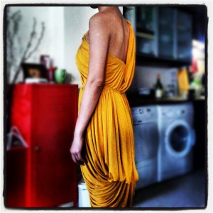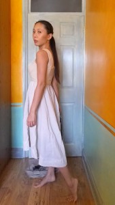My first attempt at fixing this was an unmitigated failure. I wanted to keep the dress as a pull-on with no closure. But the China Silk/Habutai I used didn’t have the flattering clinging power of the original knit bodice. The resulting silhouette was F-U-G-L-Y, especially in the back.
