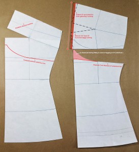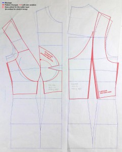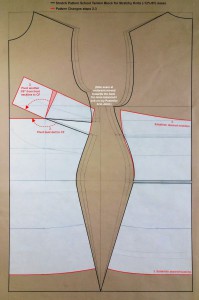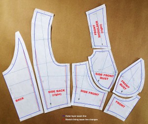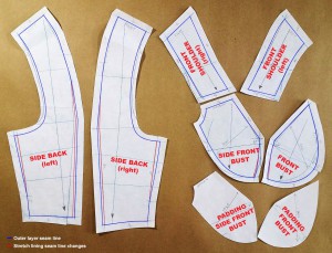 - The CF bust dart (which isn’t normally sew up) is pivoted to the princess line for closer fit at neckline. The bust point shifted up slightly and tinsy bit shaved off the cup princess seam below bust point all in the hope of helping my girls defy gravity.