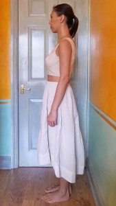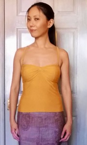 I’m not entirely convinced by my vertical seaming on the cups either. Most bustier tops seem to employ horizontal cup seaming. But this is good enough for now. If only I have a summery pedal pusher to match. And somewhere warmer to wear this in!