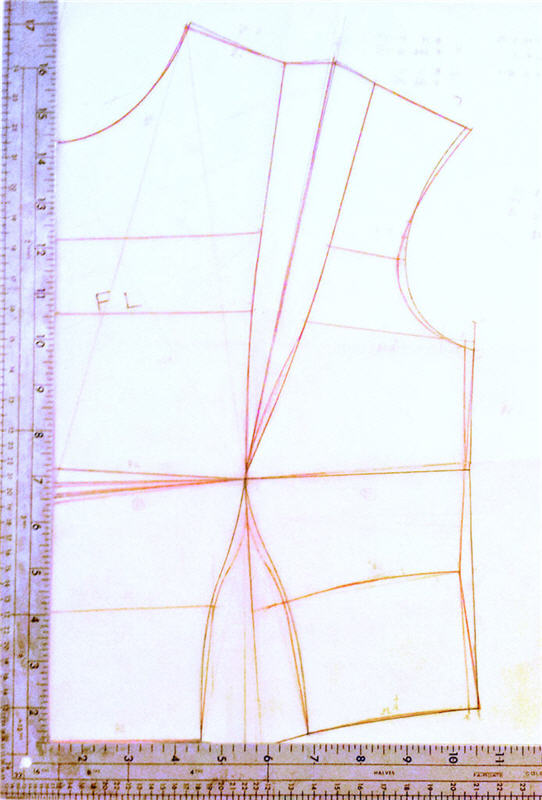 I’ve been trying to even out the left-right bodices, and checking measurements against BigĀ Bertha every few minutes. But this is what I ended up with:
