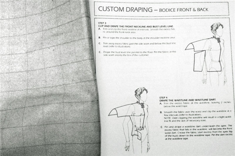 I’m starting from scratch. I’m going to try Connie Crawford’s custom draping sloper making method. I got these really old pattern-making nonwoven interfacing I can use. It’s lined with 1″ squares. I’m hoping that will help keep my future bustline and CF squared.