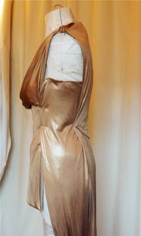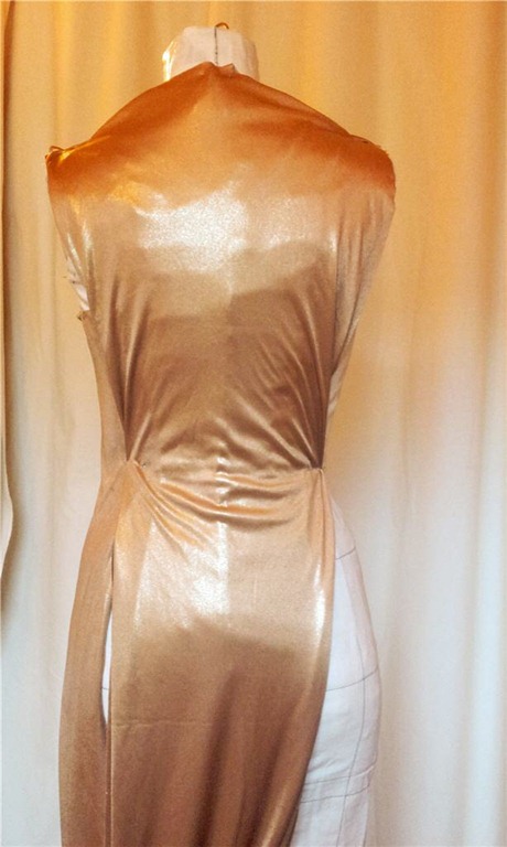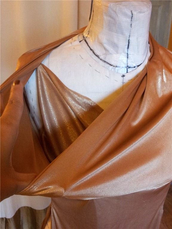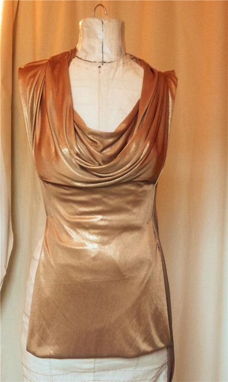 But I loved the fabric. It’s gold, but not a brash metallic. And it’s so soft and drapy. I especially loved how a cowl neck styling look in this fabric. I’ve tried to find more fabric like this and bought some duds on the way.