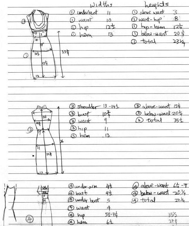 To tidy up the pieces, I measured up the draped front bottom, side, and back roughly. Then I modified my tentative knit slopers to match the measurements.