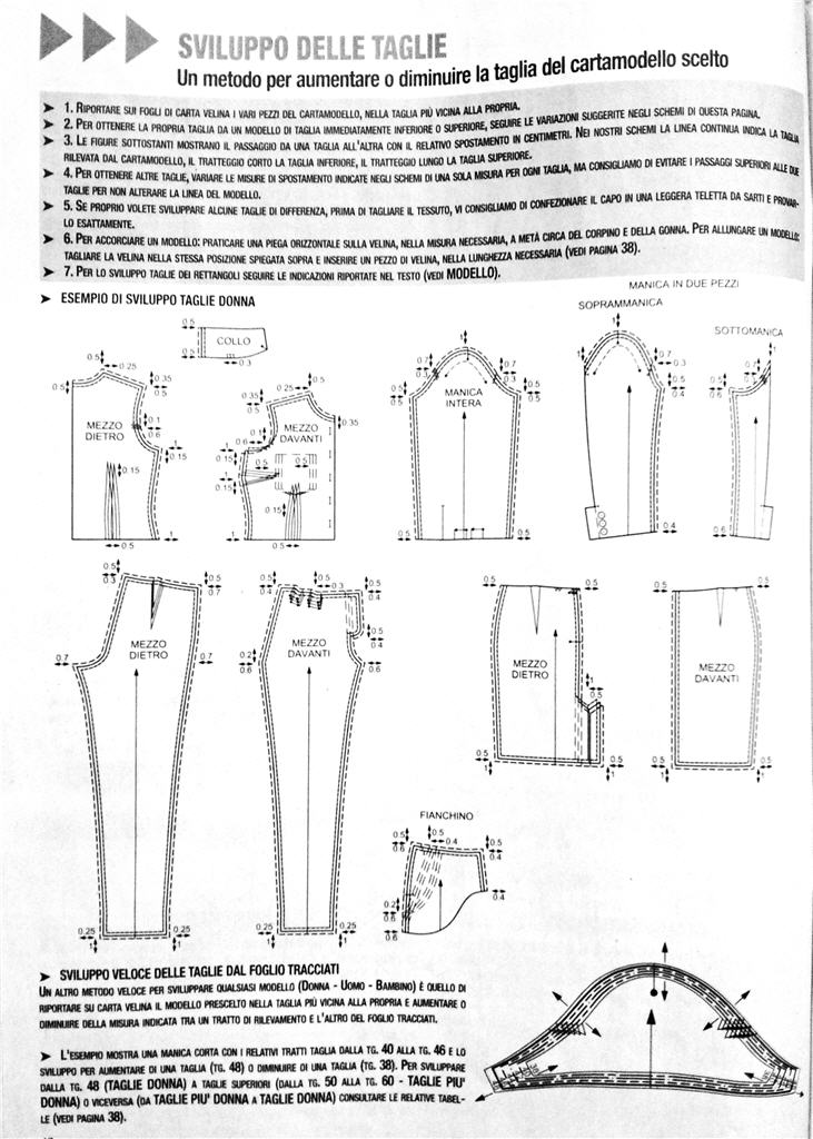 To extend a model: Cut the tissue in the same position explained above and place a piece of tissue paper, the required length (see page 38).- For the grading of the rectangles follow the instructions given in the text (see Model).