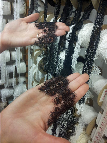 Me, I was too distracted by the company to shop properly. Plus I forgot that the stores close early on Saturdays. So the only things I bought was a large wax carbon paper & this lovely lace.