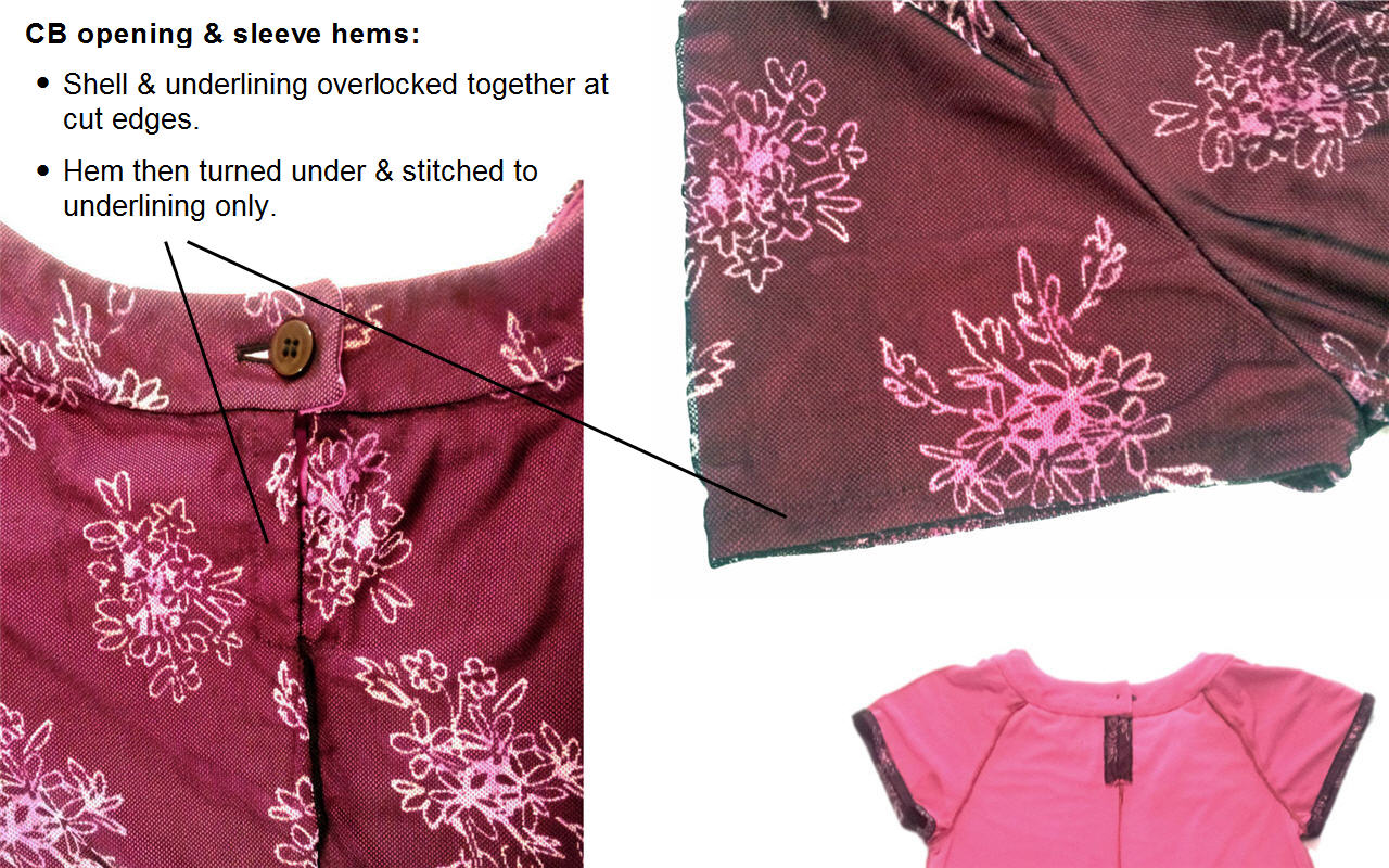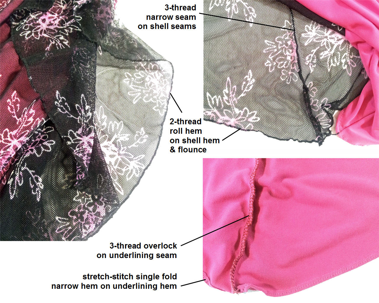 As much as possible I kept the seams and hem stitching as light-weight as possible. So the mesh shell had narrow overlocked seam and roll hems – first time I did this and it came out without a hitch thanks to the easy-to-handle mesh fabric. The underlining had slightly wider seams with a machine-stitched single-fold narrow hem.