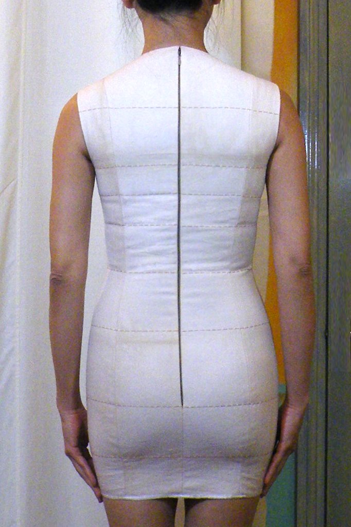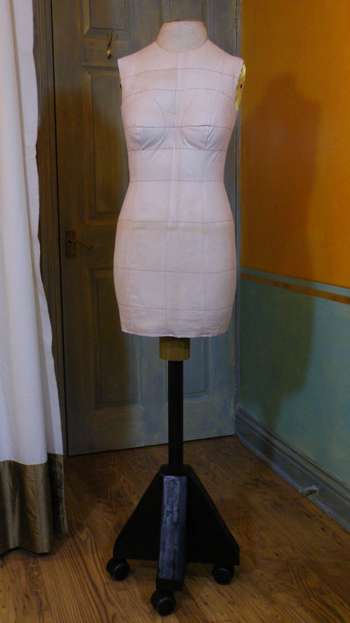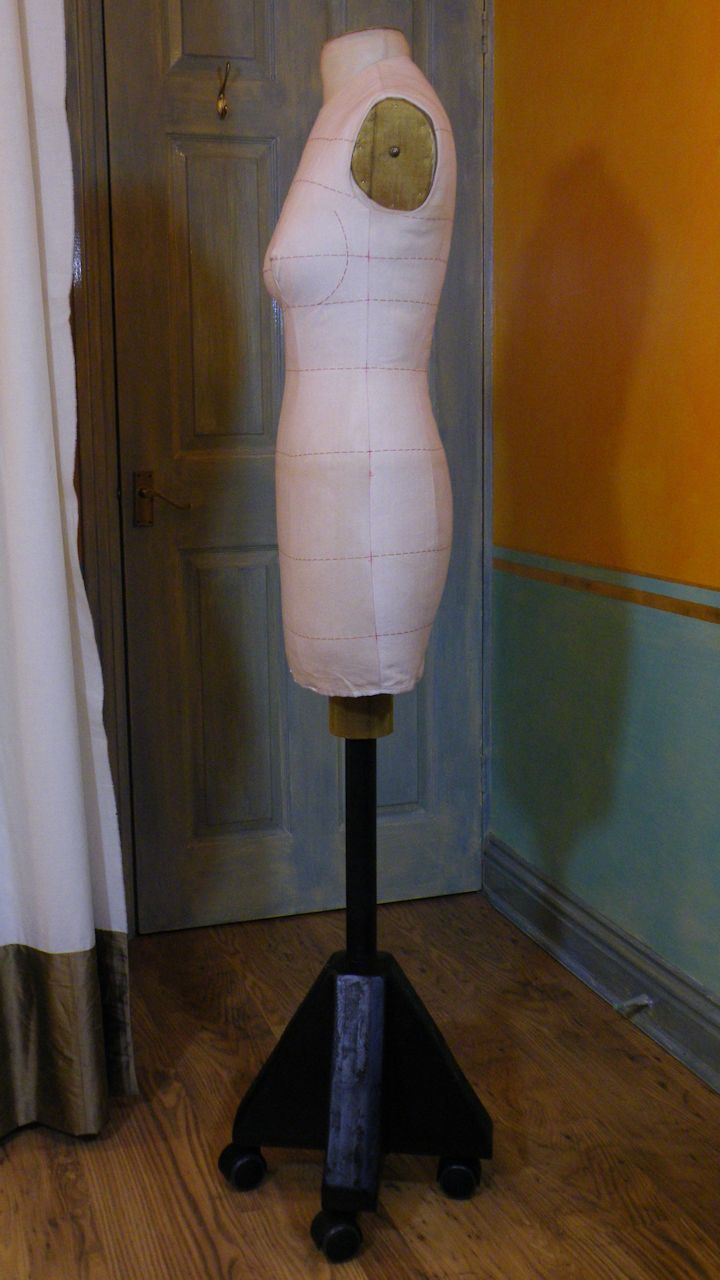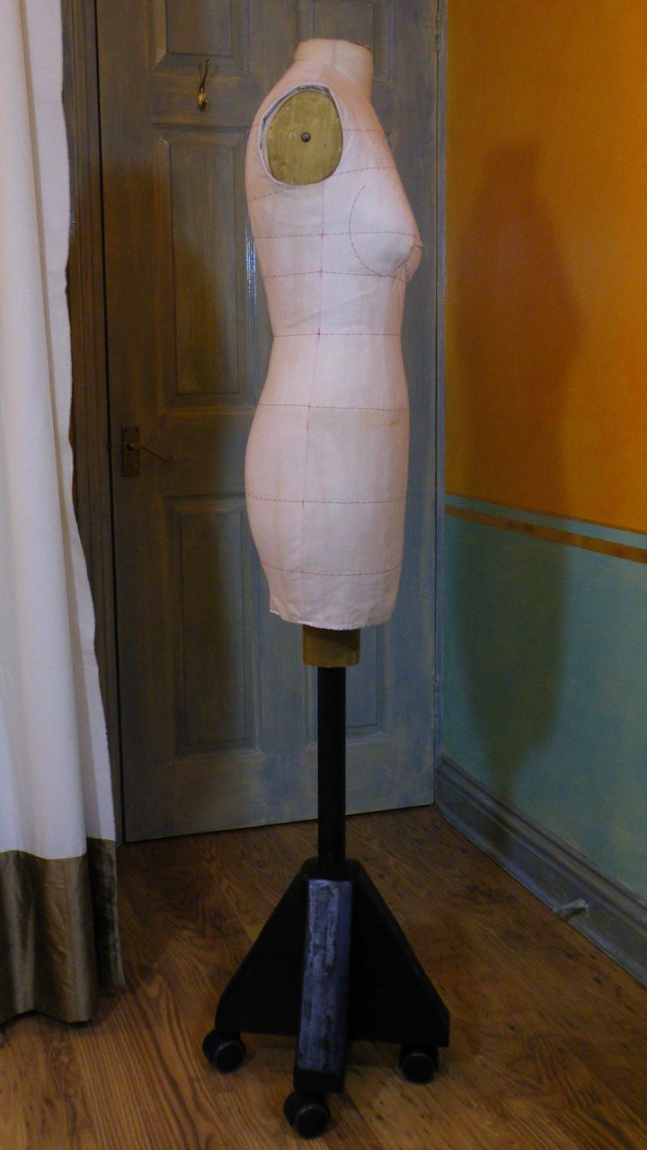 First though I needed to do a final check on the moulage fit. So I made the cotton ticking moulage cover next:
