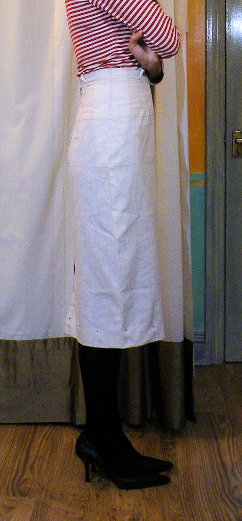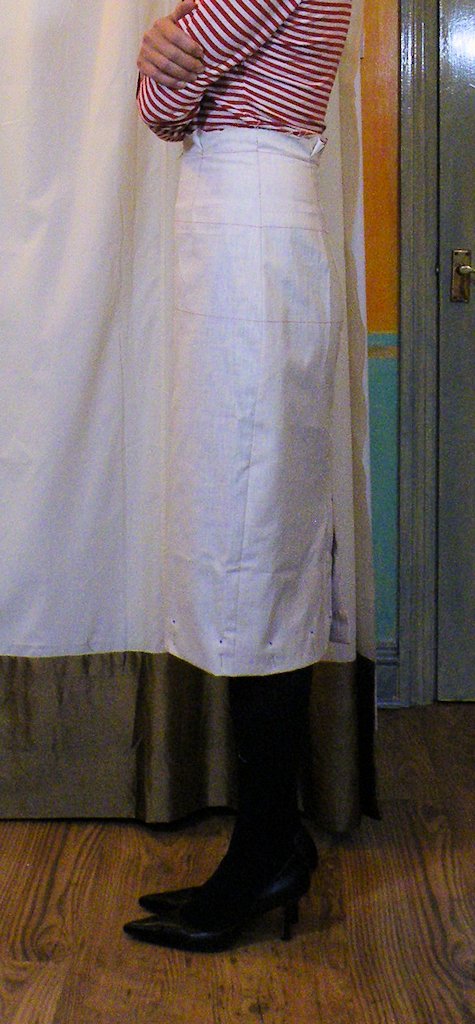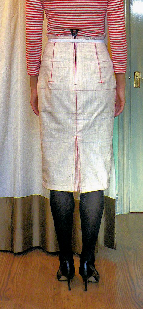 6. Tried tapering a little bit at CB below the hip as well. Above the hip I made the tapering less deep so it’d match my bodice moulage. Why? Oh, I don’t really know. Maybe “why mess with a moulage that seems to fit”?