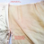 Invisible zipper & french seams Waist finishing - And I finally took the plunge and tried out my hem marker. The white chalk powder worked surprisingly well on these ivory Georgette & Charmeuse. But to be on the safe side I thread-traced as soon as marked…using red threads. Yeah, me bad. But my aging eyes thanked me for it. But wait, what’s this, the Georgette layer still ends up with a crooked hem peaking out from under the lace shell! WTF!?!? I swear it was level when I marked. I’m hoping it’s my naughty ironing of the Georgette layer (yeah, me bad again) that maybe stretched that bit out. Hopefully a wash will relax the fabric and return it to the proper even length again. Worst case I’ll re-hem that bit.