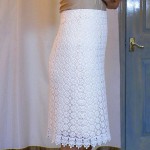 - Went for the above-knee length. I originally planned a longer length. But after trying out on Q, I decided the shorter length looks more modern when paired with my new I’m-A-Dress-Form top. As I had already cut the lace with scalloped hem, I had to shorten from the waist.