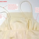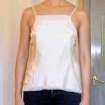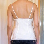 • Oh you d*** straps! Unfortunately setting them closer together in the back still didn’t prevent them from falling off my shoulders. I tried inserting clear elastic in them, having read about this trick on PR. But it only hoist the whole camisole up and the straps slip right off again. Boo. Maybe it’s because my top is so light and not skin tight. Perhaps that trick only works when there’s horizontal tension (like bra band) and/or vertical tension (like swimsuit crotch or weight of a heftier dress) to anchor the bodice and activate the strap elastic tension.