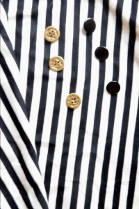 I bought a fair few more buttons, including these gold ones from M&J Trimming (where I also got petersham ribbons in a few different colors). And big coat snaps, including gold ones from Pacific Trimmings. The black snap fasteners and the gold button with anchor motif in the striped jersey photo above are also from Pacific Trimming. So too are the bag D-rings, bag feet, and magnetic snaps. And RiRi zippers. And lingerie elastics. And eye & hook tapes. Boy, did they get my business this time or what!
