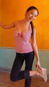And my attempt at sweetheart neckline in these ruched bust tops are just not happening. I should have paid more attention to Stretch Pattern School’s lesson on tension line. The elastic at the neckline simply cannot keep the top up and dip in the CF at the same time. I will have to find other ways of keeping the neckline up if I want a sweetheart neckline.