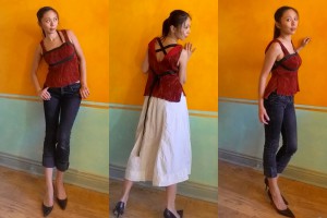 I wasn’t sure my Fortuny Top would work out what with the complicated innards – the result of a band-aid approach to draping. But it’s actually quite comfortable to wear. And aesthetically it’s right up my alley with a mix of soft & edgy, feminine & masculine. Definitely much more wearable than it’s previous incarnation as a head-in-the-cloud Fortuny Delphos Wannabe Dress.