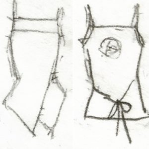 The initial result was a bit disappointing. The main problem was a gapping front neckline: I didn’t account for hollow at the chest that affects the fit of a lowered neckline. I also ended the shawl pleating too high up at the side seams. This resulted in the pleating being barely visible & the shawl not overlapping the front neckline enough, thus exacerbating the wide gapping neckline problem. To fix this I tried redoing the armscye – side seam: I narrowed the front neckline (cross-front width) slightly at the armhole, and reduced the depths of the pleats a bit so the shawl can end lower at the side seams (bustline now). It’s a bit better now. But I’m still not 100% sure I’ve cracked this silhouette.