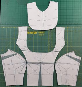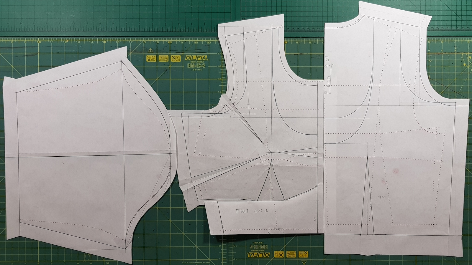 The last two photos are the final bodice patterns. The sleeve pattern was drafted to Sari Blouse instruction found on Style2Designer blog.
