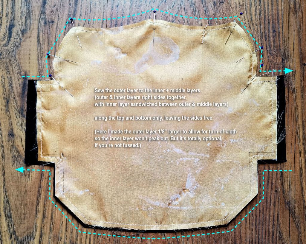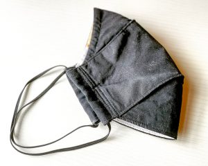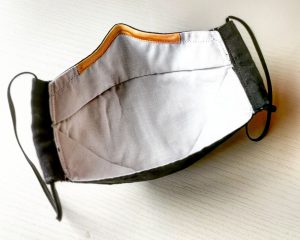 There are variations with no pleats. I found these to be less successful at keeping the fabric off my skin even though commercial N95 is similarly unpleated. I think the problem is that fabrics aren’t as stiff as the bonded non-woven material used in commercial N95. You can experiment with fusible interfacing to stiffen your inner layer if you want to try the version without pleats. But I’m happy to stick with the pleats – they seem to help keep the crucial area off my skin & are easier to sew.