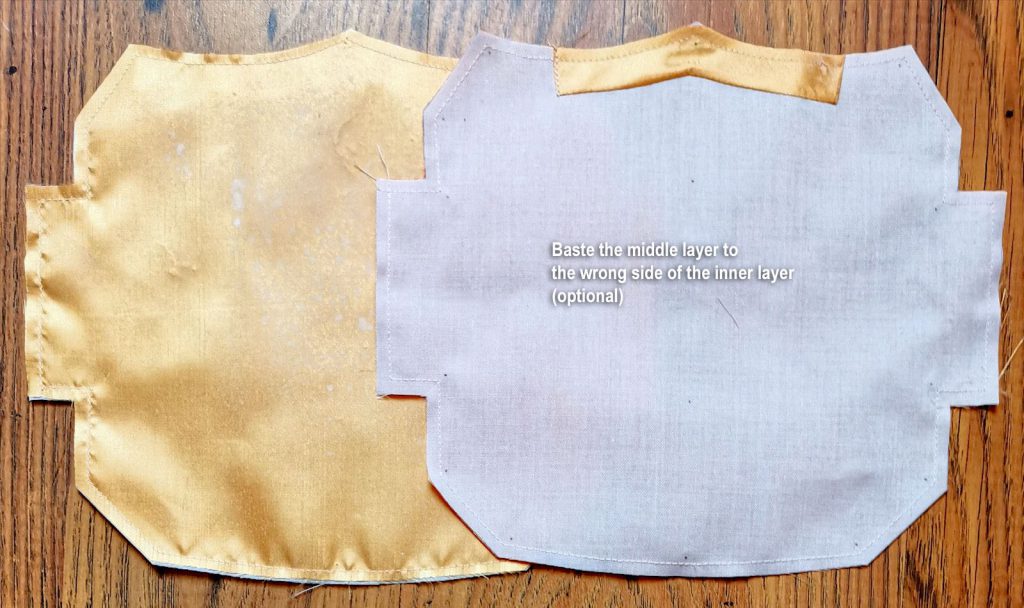 Baste the 2 inner Front layers together & Back shell/lining layers together (lining handled like underlining).