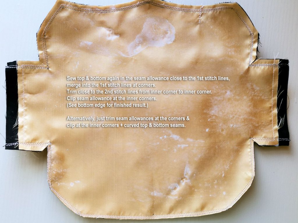 When it comes to cutting out, the top & bottom peices are lined/underlined. The top Front also has an extra layer of lining for bust padding pockets – like the VS replacement Bandeau Top above. The strap is shell fabric folded length-wise into a tube. The top uses 16mm elastics at top & bottom edges + boning at the side seams for insurance against waldrobe malfunction. The cutout & leg holes use standard 8mm elastics. The strap has no elastic in it.