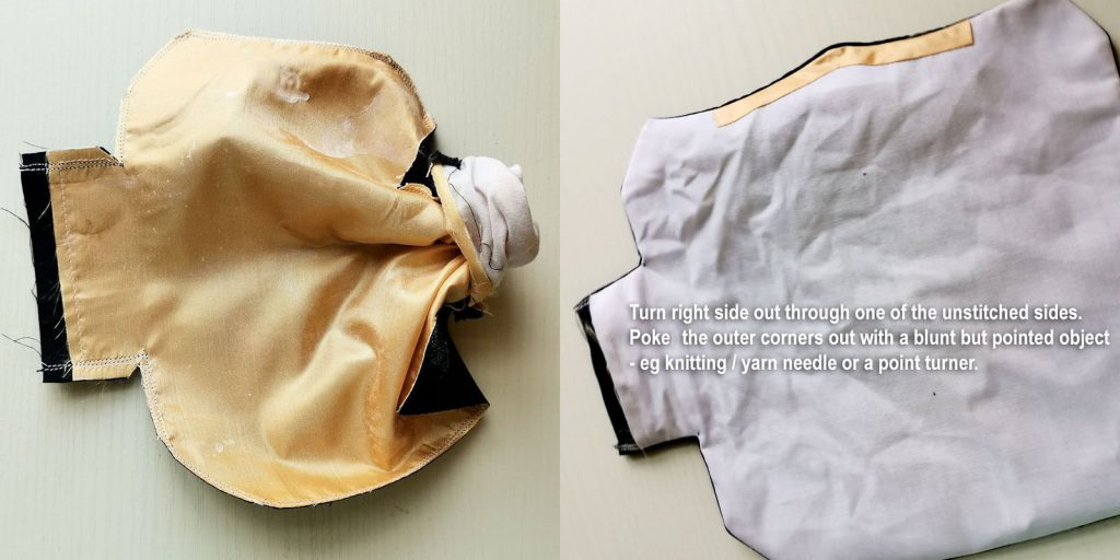 One final thought on fabric selection – I’d go with lighter colours in a hot climate. It gets sweaty in there as it is, we don’t need no heat absorbing dark coloured fabrics to make it worse! The sewing instruction below is demonstrated with a black outer fabric however because that’s what hubby insisted – nothing girly for him. Then again he’d only wear masks indoor away from the sun, so probably not as bad comfort-wise. Me I’m sticking to white as much as possible! Here’s what I ended up using for my own masks: