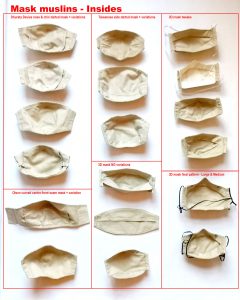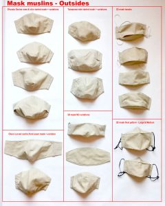 When it comes to pattern, my criteria is the same as for fabric selection – a balance of protection & comfort. So the 19 mask muslins I made falls into 4 basic types with variations.