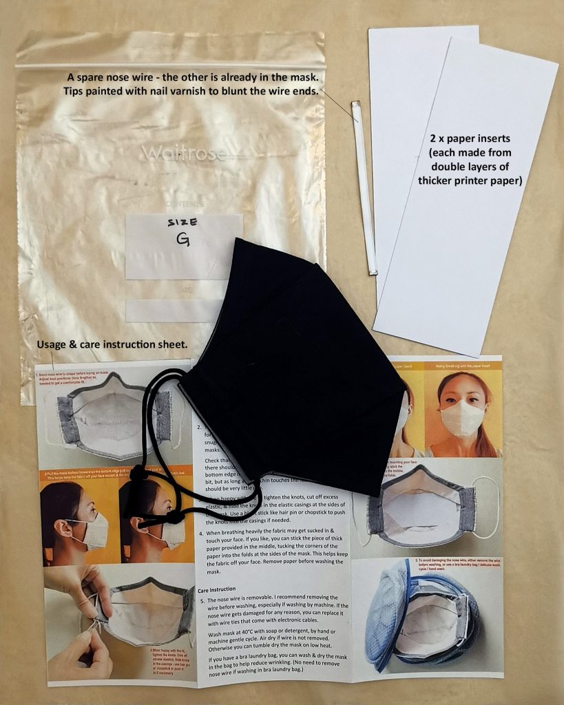 For the final package I send to my friends, I added a spare nose wire, 2 paper inserts, and usage & care instruction sheet.