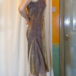 First off this fabric is a royal PITA to work with. Unlike Mario Fortuny’sGrecian Delphos which were made of silk, this is 70s Mary McFadden style polyester mushroom pleats. I don’t know if the Fortuny silk version drapes better, but my polyester version definitely balloons out in the most unflattering places, yet at the same time is highly shifty & unstable. An Utter Diva.