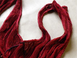 As much as possible I kept the seams and hem stitching as light-weight as possible. So the mesh shell had narrow overlocked seam and roll hems – first time I did this and it came out without a hitch thanks to the easy-to-handle mesh fabric. The underlining had slightly wider seams with a machine-stitched single-fold narrow hem.