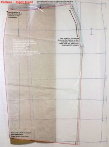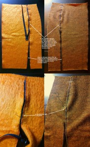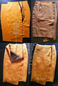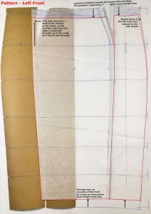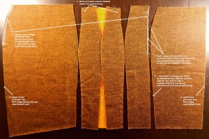 Pattern & construction: Although I went for a Western elasticated + draw-string pajama pants look, the pattern is based on traditional Indian churidar trousers pattern instruction. These are usually drafted directly on the fabric using hip & leg measurements. They’re cut with only seams on the inseam & crotch, and side seam on the bias fold. Normally they’d cut the wasitband separately, but mine is just cut-on. I also wanted pockets, so I added small waist dart at the side seam to attach side-seam pockets. Unfortunately this approach didn’t work out for me. I thought the bias grain would provide moving ease while creating a slender look. But it was rather uncomfortable to wear despite not being skin-tight – the front thigh feels tight at the same time the front crotch looke unsightly baggy. I ended up having to take a wedge from front crotch through the thigh area and add that back to the back crotch as gussets. Not an elegant solution & still a bit uncomfortable. Maybe I have strange legs, maybe it’s an acquired taste. Anyway, now I know to stick to my legs cling film wrap Trousers Block.