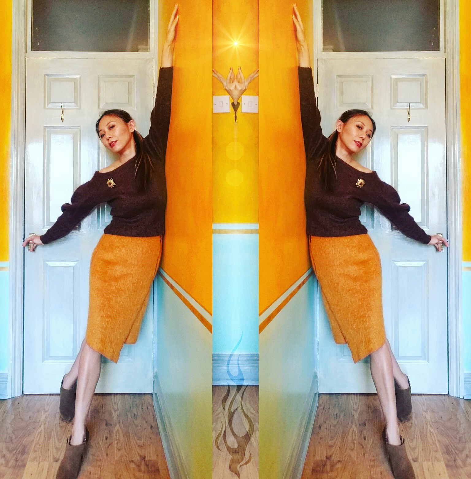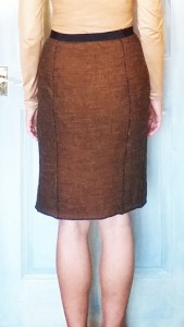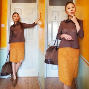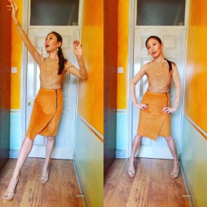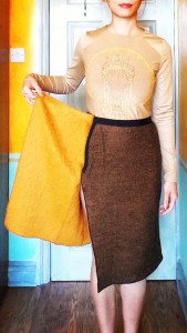 Pattern & construction: The panel skirt was inspired by one I saw in a K-pop video. The back panel is just a rectangle with elasticated waist. The front panel is shaped to fit the leftover fabric I had & to provide dart shaping without seaming or gathering. I had hoped the skirt would work well as a beach cover-up, but I don’t think the translucent fabric work well with this design. It’s not so bad worn as a floaty overskirt over an underskirt though.