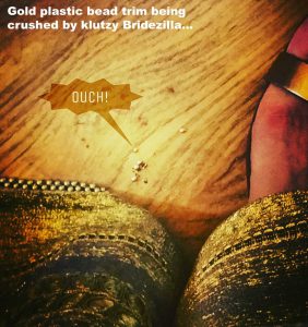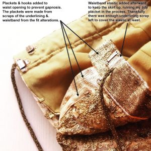 Pattern & construction: The skirt part is just a rectangle pleated at the princess lines. The strapless bodice was based on my last bodice cling film wrap. To minimise risk of wardrobe malfunction I made a muslin. Good thing I did because I forgot that because it takes a while to do a cling film wrap, you inevitably wrap in breathing ease. So without taking away this ease, any strapless top based on this will flash strangers. For this one though, because the shell fabric is woven, I decided to keep the ease, but used negative ease stretch fabric for the underlining & lining + elastic at top & bottom of the bodice for extra insurance. Because the top has minimum ease, I had to add hook & eye opening at one side seam to get in & out. I added rigilene boning to the bodice side seam & side opening to minimise the bodice collapsing / wardrobe malfunction. Unfortunately the boning ends poked through while I was on holiday. I melted the ends like previous times, so I’m not sure what I did wrong this time. Maybe it’s the nature of the fabrics I used this time. I may have to retroactively pad the ends with something sturdier … if I get a chance to wear this more often.