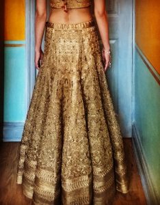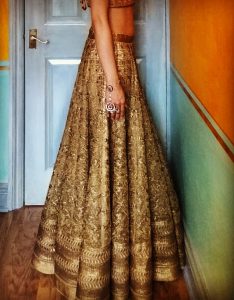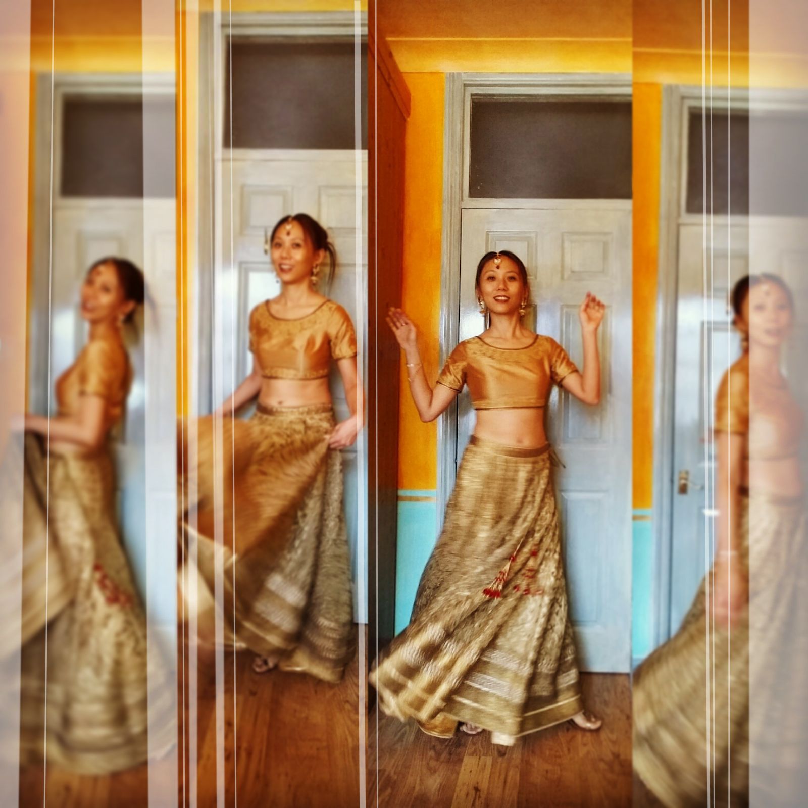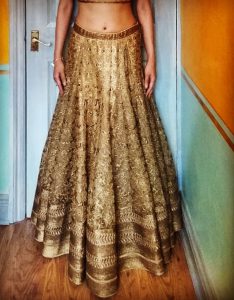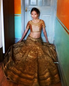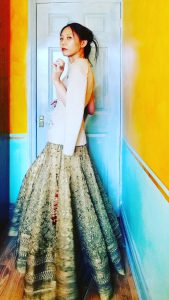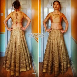 Fabrics: sleeve fabric from Jinaam Floral Tulip 7363 Anarkali tunic for the bodice & Dupatta scarf for the skirt part, nylon/lycra stretch Bodystocking & Silhouette fabrics from Funki Fabrics for bodice underlining & lining.