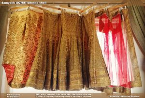 This is similar to Gajiwara GS7384 lehenga choli (the first photo above), but with blouse fabric that’s the same as the skirt rather than a different but coordinating design. Also the Samyakk skirt is a panel skirt that’s fitted through the hip, whereas the Gajiwara skirt looks like it may be variations of the circle skirt, or at least panels that flares out higher up. I had wanted to get the Gajiwara version, but I couldn’t find a shop that can confirm they sell the original. And when I asked Gajiwara on Facebook, their response came too late – after I’ve already placed an order with Samyakk. Also they wanted me to call them long-distance & I felt uncomfortable with that, especially since I’m not sure if they would speak fluent English.