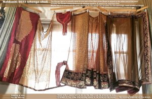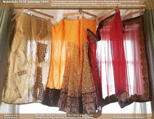 I think both lehengas may be relatively “mass-produced” rather than made to order or made as an one-off as some Indian/Asian outfits can be. Maybe that’s why both came with all three elements – blouse material, skirt, shawl – stitched / tacked together (see photos below). Perhaps this ensures each package has all the bits that its suppose to have. It is a bit of a hassle though to have to unpick these temporary seams before I can start sewing. I’d much rather the bits come as a loose kit – like bra kits do. But the designs are fabulous. For me to have to source all the bits & do the embellishment myself would be just as much hassle if not more.