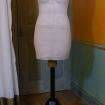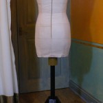 As she was originally my size with a fairly uniform reduction (1/2″ at CF, CB, sides), theoretically I can put an even layer of padding on her. But I might have complicated things a little bit by also taking in a little bit for the breathing ease that was wrapped into the original paper tape – I want the option to be able to make skin-tight corset or evening dress.