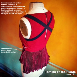 Thank goodness there’s Pattern Magic 2‘s Different Facing Different Looks technique. Too bad I chose a whimpy cotton batiste for the facing/lining. Gravity won. All the more reason to incorporate the elastic into the design. Now it serves both a decorative & a structural purpose.