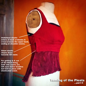 - Rigilene boning was added to the lining at side seams, underbust princess seams, & CF opening in the hope of further helping the girls defy gravity.
