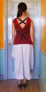 In the end I had to end the Endlessness of this dress & commit to a proper waistband with elastic inside. I had a hard look at my lifestyle and decided that I’m never going to wear it as a Caped Crusading Poncho, nor as a more impractical version of Hammer Pants – imagine going to the loo in that! It’s still has some shape-shifting ability, but all are variations of skirts & apron skirts.