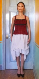 My first attempt at fixing this was an unmitigated failure. I wanted to keep the dress as a pull-on with no closure. But the China Silk/Habutai I used didn’t have the flattering clinging power of the original knit bodice. The resulting silhouette was F-U-G-L-Y, especially in the back.