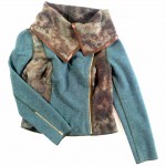 Doesn’t the jacket look so cool in Burda magazine’s photos? I was seduced. Ever since I sew Marc Jacob’s pastel moto jacket I wanted one in non-traditional color & fabric. I like the simple style lines. It offers a load of possibilities for showing off my double-face fabric: color-blocking, visible reverse side.