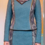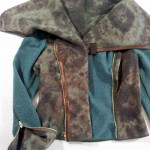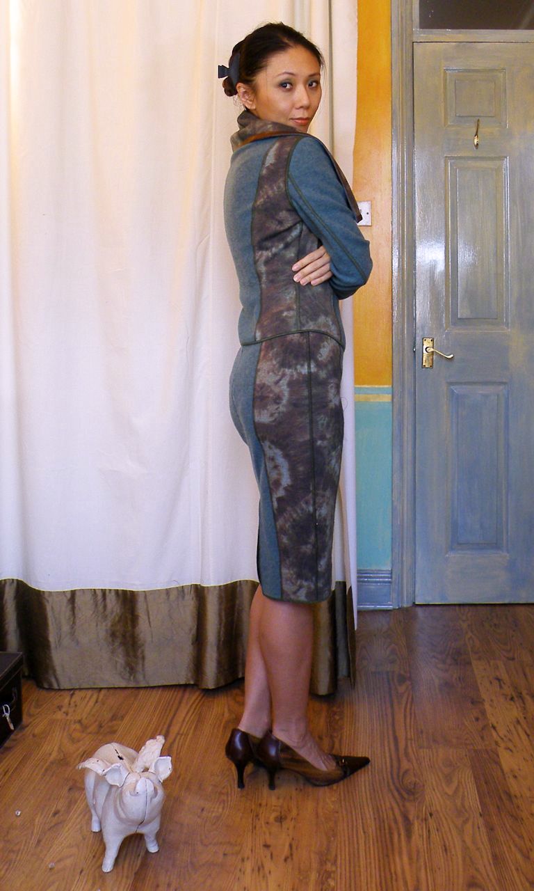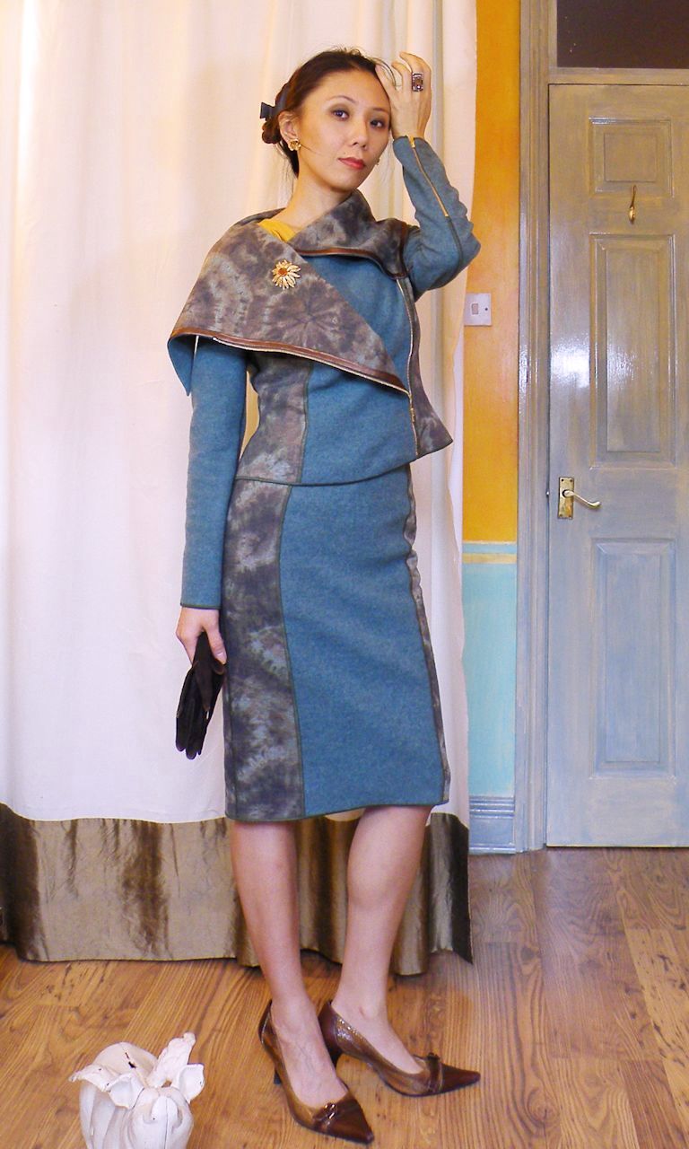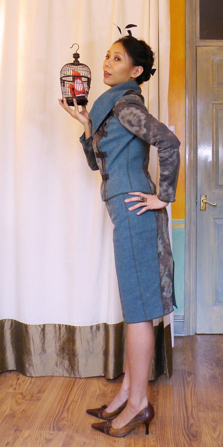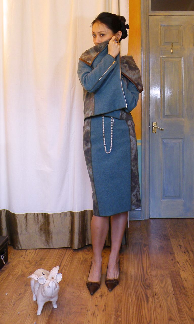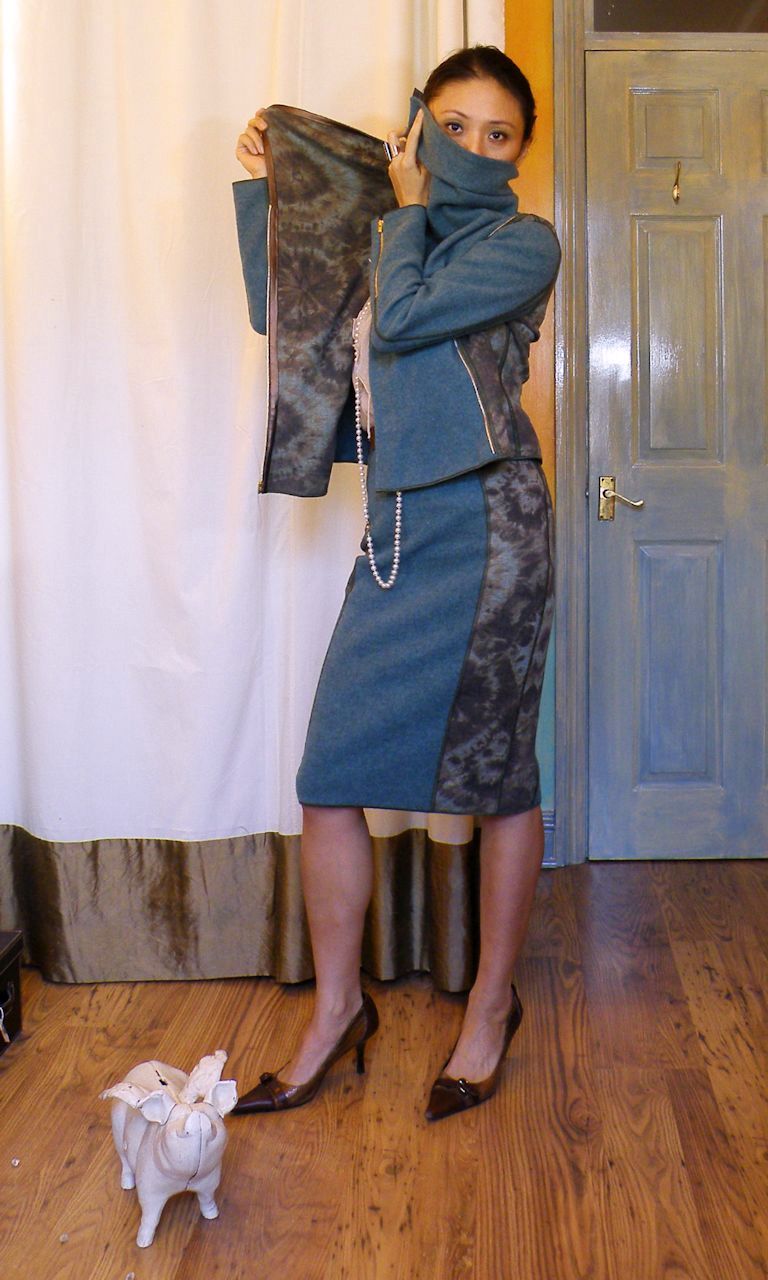 Anyway, I decided to try felting the portion for the jacket. Big mistake. Even though it’s suppose to be wool acrylic blend, it didn’t felt at all after being put through hot wash & tumble drying. It just pilled. And softened further!!!??? Oops. Thank goodness I had this pill shaver gizmo in my sewing gadget cupboard. It managed to get rid of most of the fuzz, though it could do nothing about the slight softening. Lesson learnt: don’t be stingy – test on a swatch! BTW the fabric does take gentler wash cycle & air drying. I like to pre-wash almost everything to weed out divas from my closet.