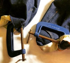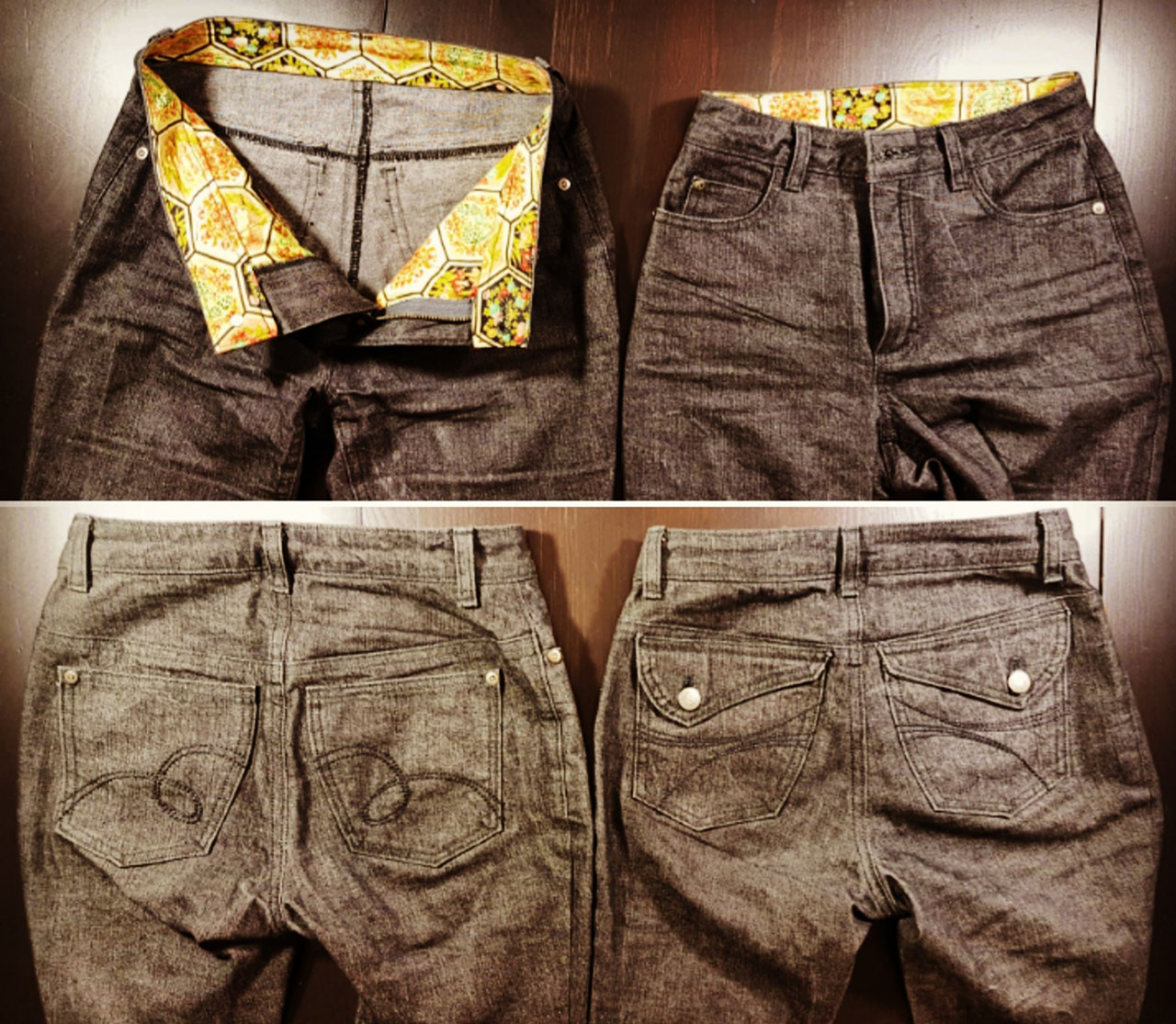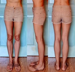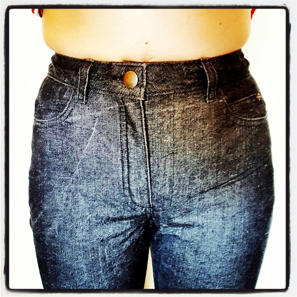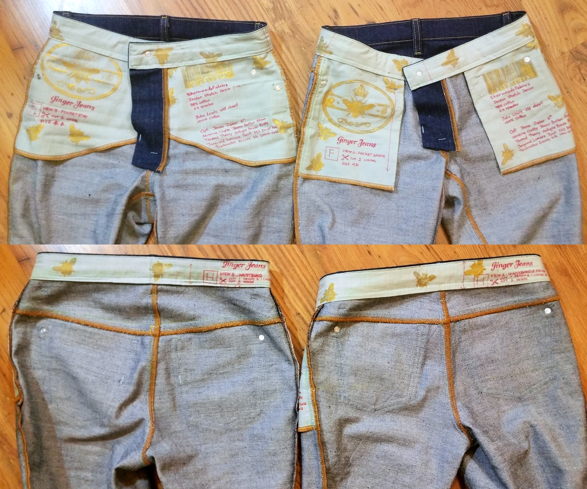 When I get home, I’ll probably reduce the waist band to Marybeth’s original suggestion of approx. 6” finished height and tack the underlining or remove it completely.