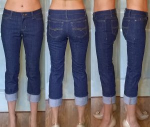 It’s kind of a one-size design utilizing full width of the fabric. Depending on your fabric and your waist measurement, it’ll come out differently length-wise.