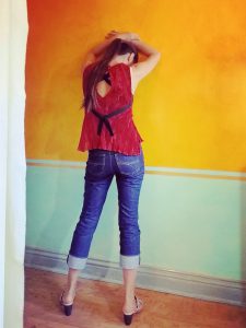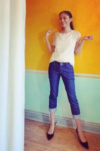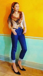 This time, I did feel pangs of guilt and wonder if I should buy one. You know, to support independent designers who come up with clever design ideas. For the art of this garment is in the wearing instructions, which Emami provides video demonstration for on their website. As Marybeth’s instruction shows, there’s very little sewing involved. Plus the price seems to have come down.
